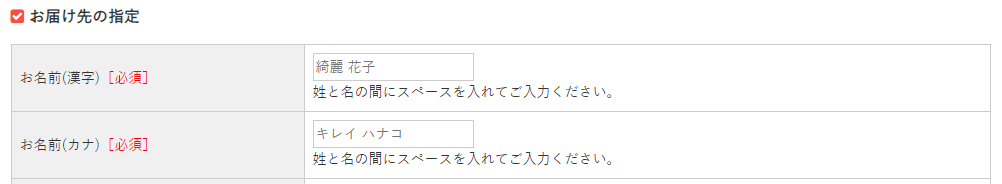 <input type="text" name="kana01" id="kana01" value="<!--{$arrForm.kana01}-->" placeholder="キレイ ハナコ"/>