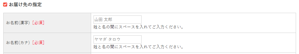 「綺麗花子(キレイハナコ)」から「山田太郎(ヤマダタロウ)」に変更