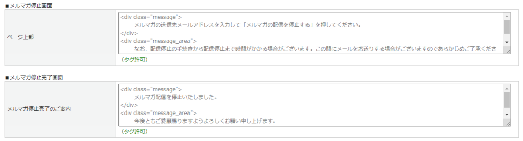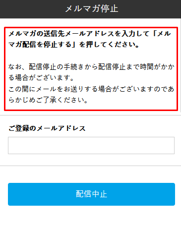メルマガの配信停止URLをクリックした際に表示される画面です。
