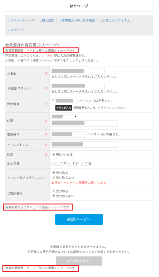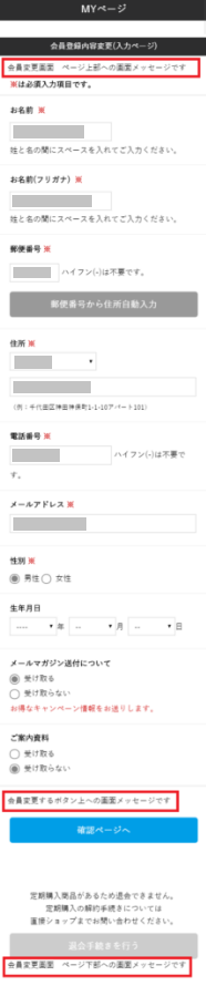 デザインPC>画面メッセージ設定>「会員登録・変更ページ」タブ