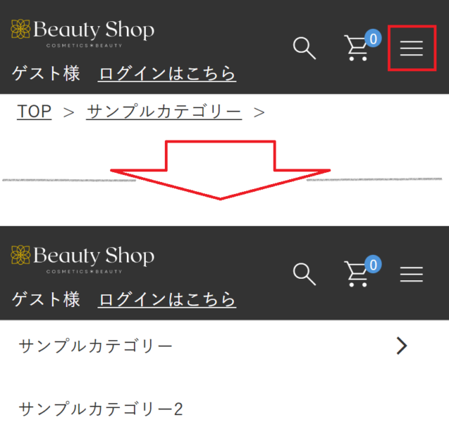 ハンバーガーメニューで下位カテゴリーまで選択可能です。