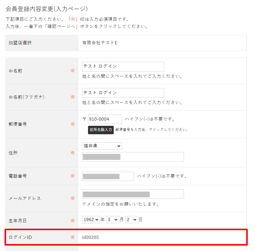 会員変更画面「表示する」の場合に、ログインIDの項目が表示されます。