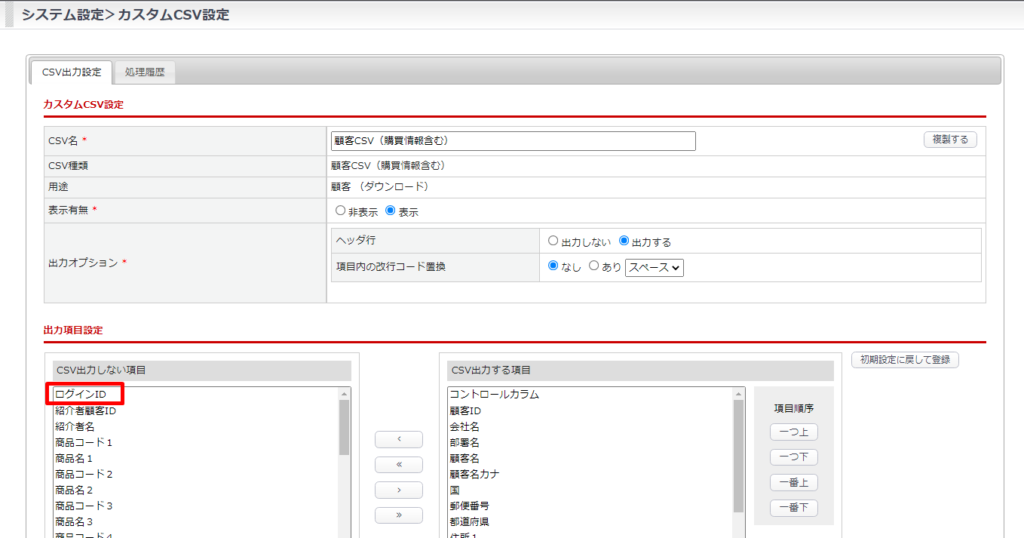 顧客CSVの編集画面にて、ログインIDが項目に追加されます。