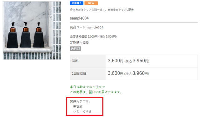 商品ページでは以下の赤枠内のように表示されます。