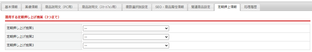 | 定期押し上げ施策1~3 | プルダウンから定期押し上げ施策を設定します。![]() |