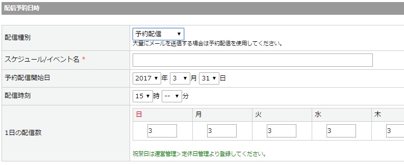 ※祝日の場合、祝日に設定されている数を上限として配信します。祝日の設定は運営管理>定休日管理より登録された内容が適用されます。