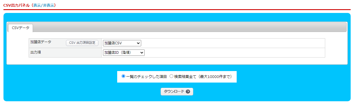 加盟店の確認・管理を行います。加盟店CSVファイルの出力なども可能です。