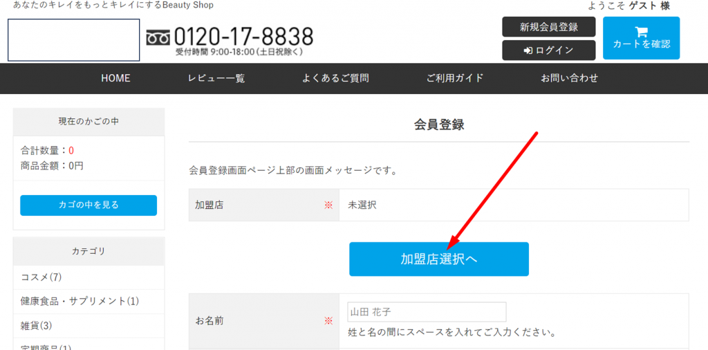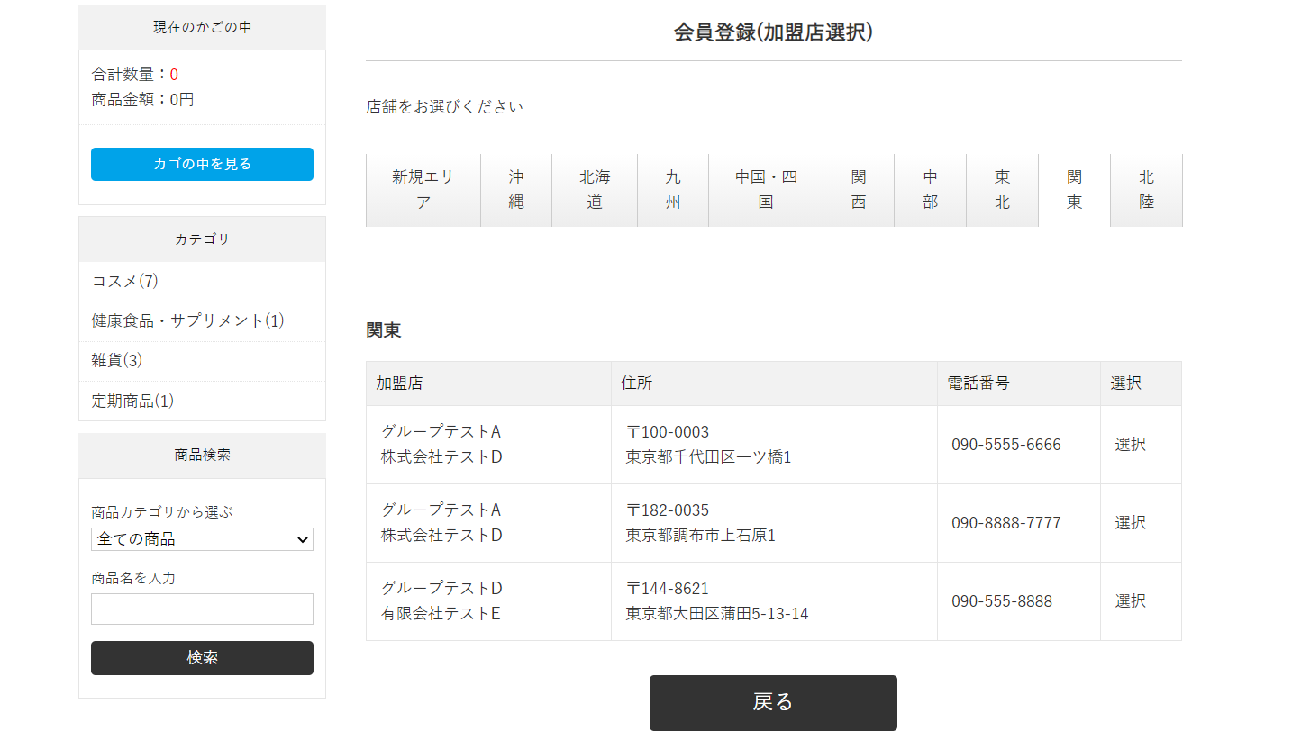 登録したエリアと紐づく加盟店は、サイト会員登録時のエリア選択画面に反映されます。