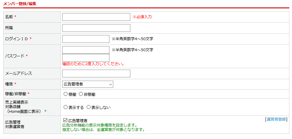 STEP3.メンバーの新規登録、ID/パスワードの情報を設定