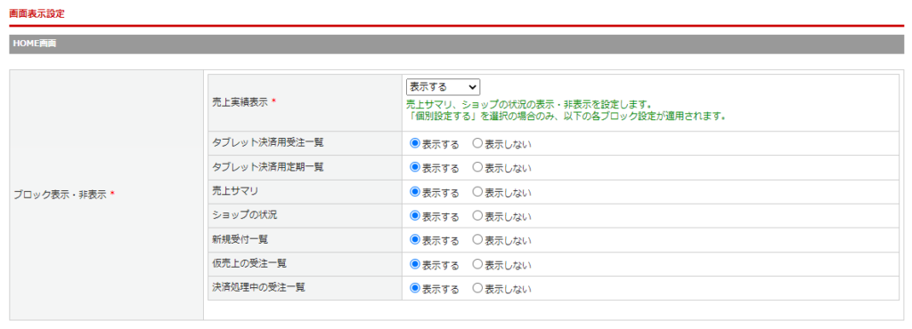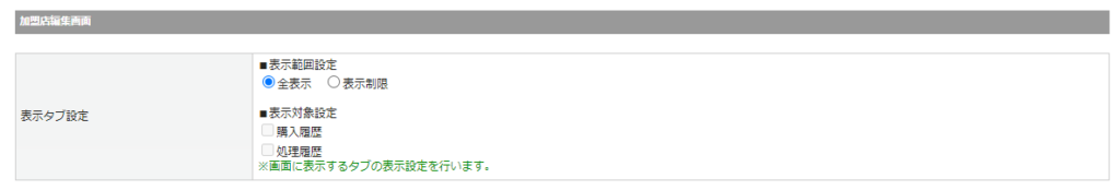 表示タブ設定 加盟店編集画面の表示タブを設定します。