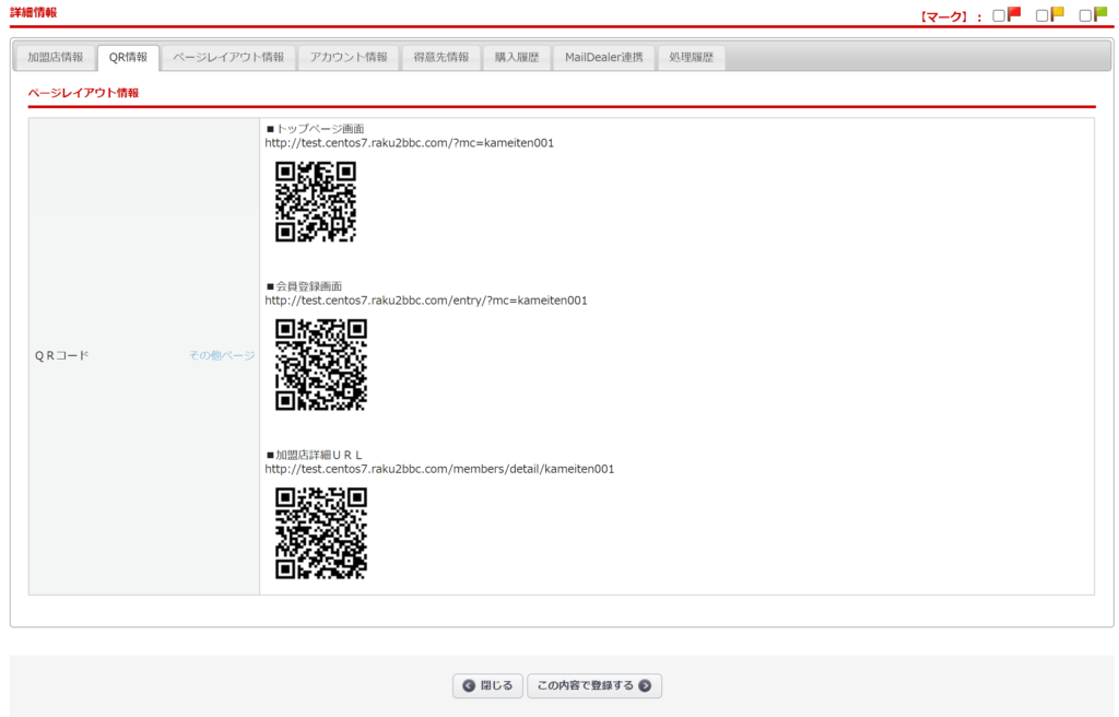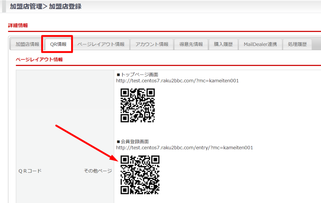 加盟店>加盟店登録>QR情報タブ
