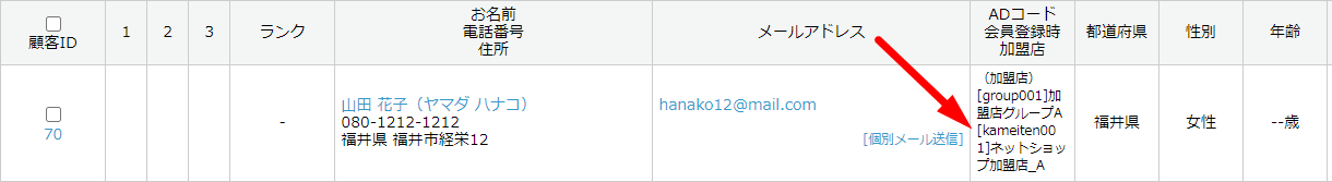 4.会員登録が行われると、「ネットショップ加盟店_A」は会員登録時加盟店として顧客データに紐付いて登録されます。