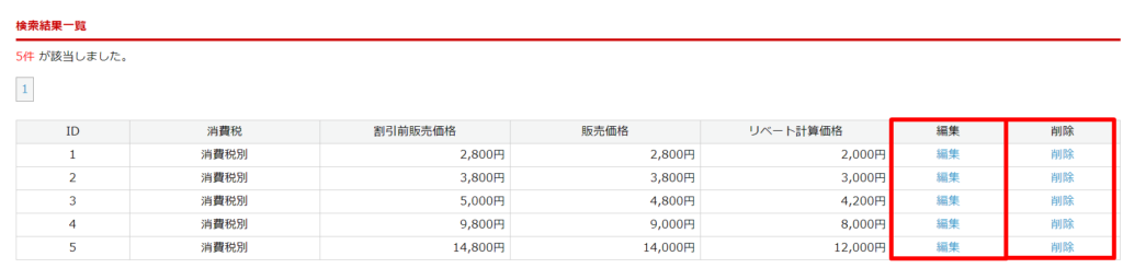 登録内容は、 検索結果一覧の「編集」をクリックすることで確認・編集できます。