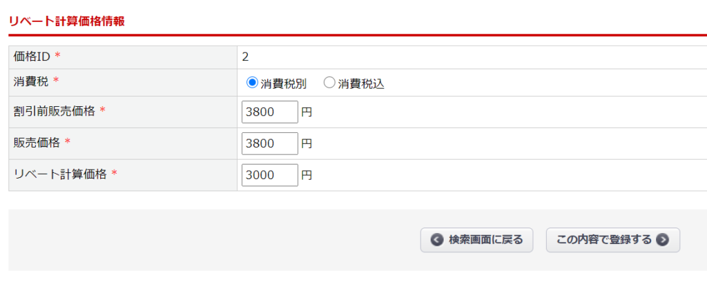 ・商品ごとに個別でリベート計算価格を設定することも可能です。