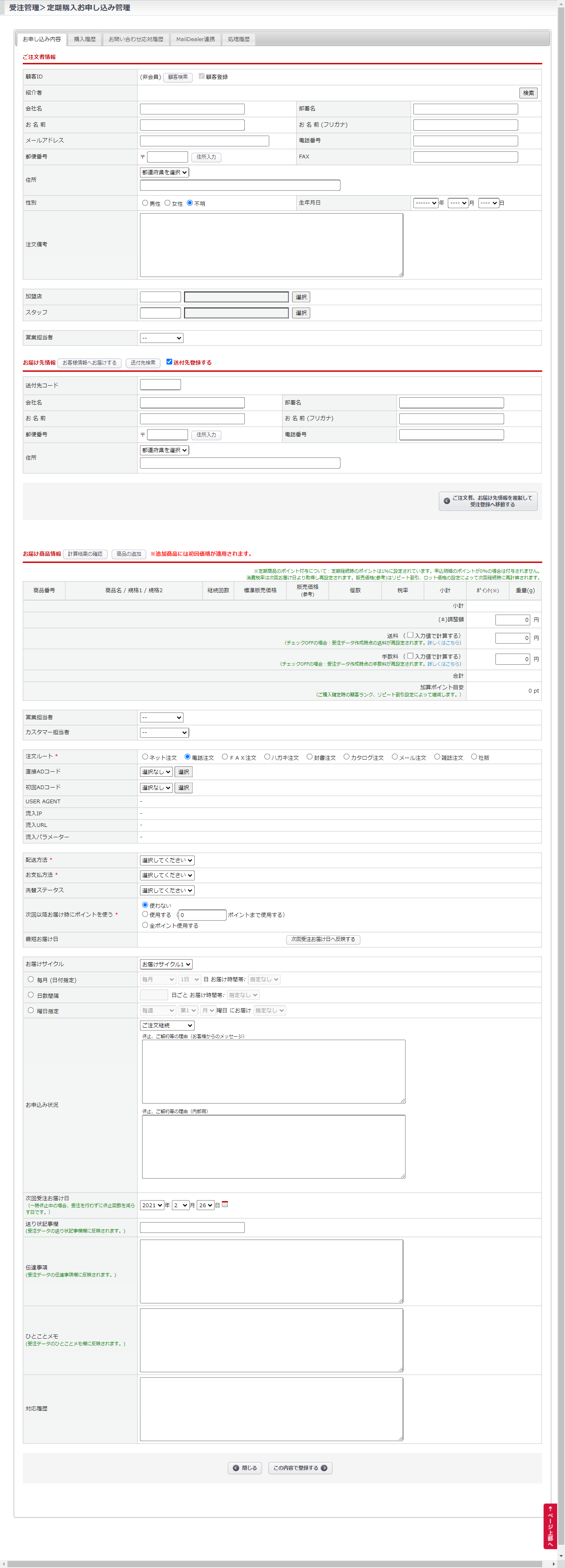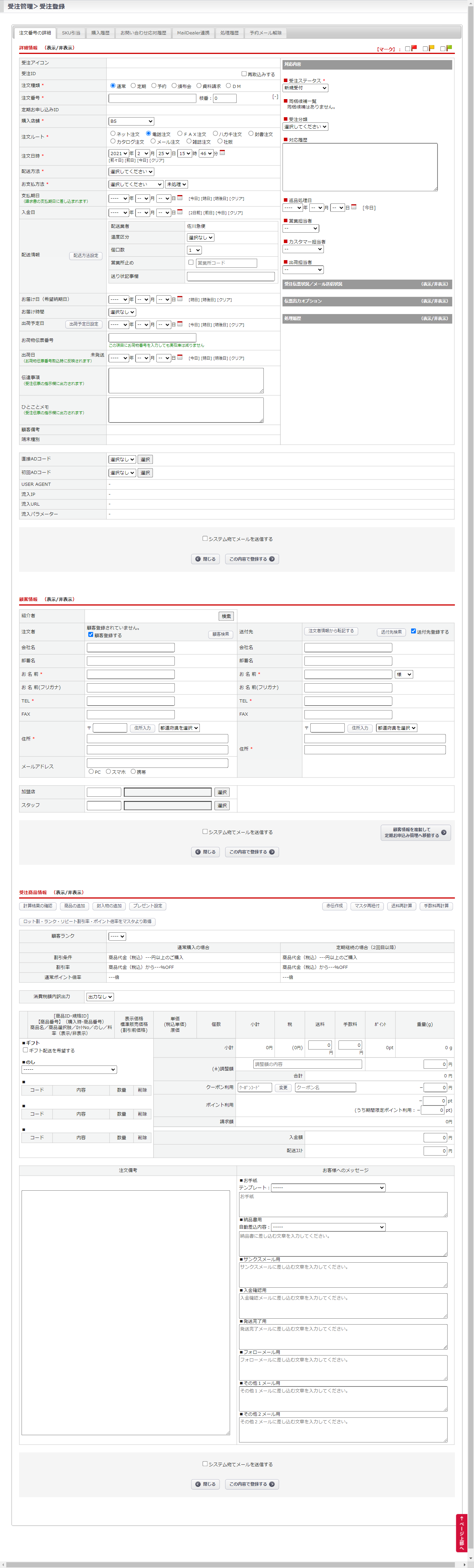 注文の詳細情報、顧客情報、受注商品情報を入力し、新規に受注データを作成します。