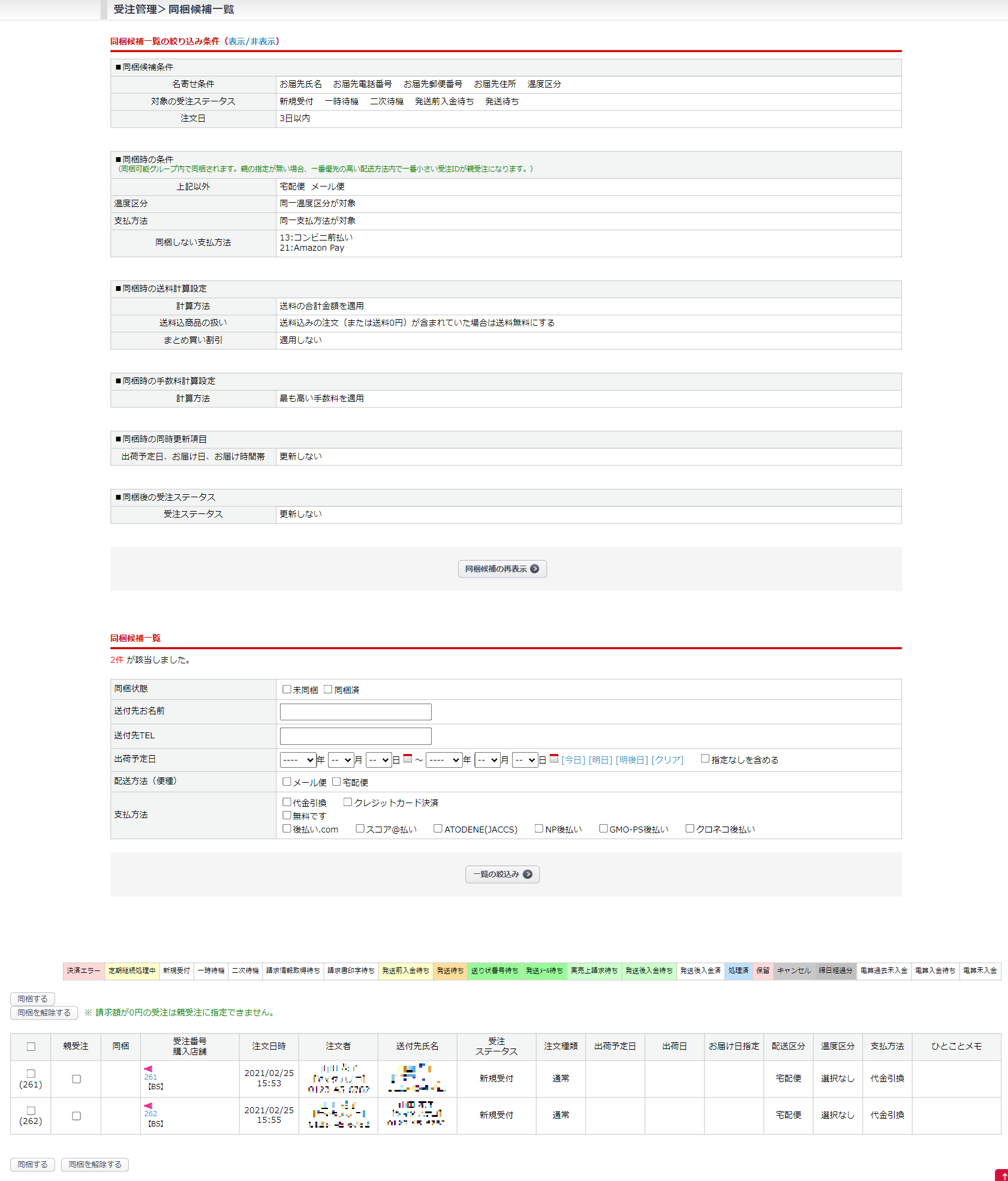 受注登録・受注取込した受注データの詳細は、受注一覧の検索結果一覧にて