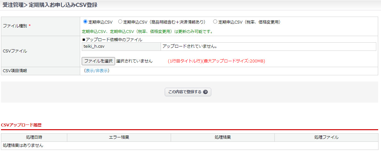 各後払い決済の管理画面からダウンロードした審査結果をCSVで取り込むことができます。