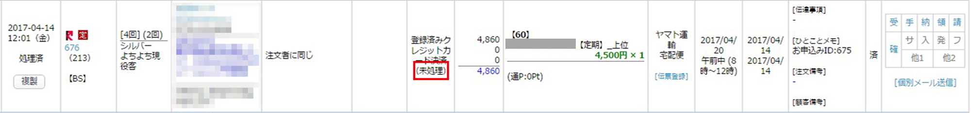 定期継続注文で支払方法がクレジットカード決済の場合、