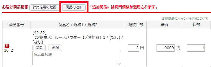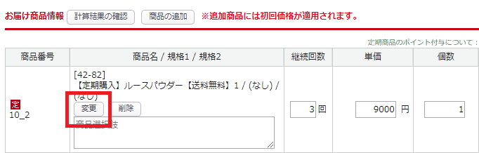 「変更」ボタンで商品(明細)を入れ替えた場合