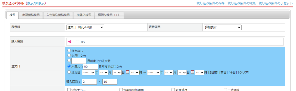 2. 絞り込みパネル右上部にある「絞り込み条件の保存」をクリックします。