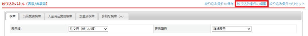 1. 絞り込みパネル右上部にある「絞り込み条件の編集」をクリックします。
