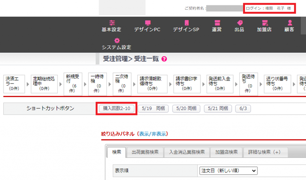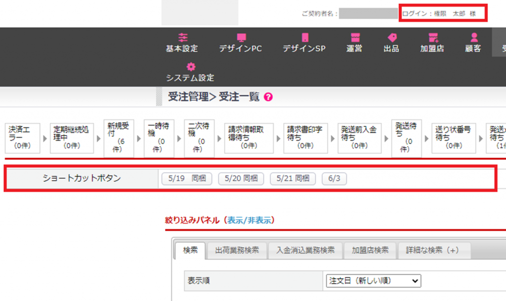 4. 受注一覧を再表示でショートカットボタンの追加を確認します。