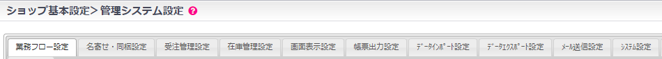 | 5 | 画面表示設定 | 受注一覧、編集画面の各設定について、デフォルト表示等の設定です。 |