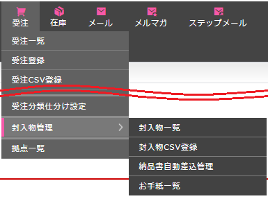 詳細は受注>封入物管理>封入物CSV登録をご覧ください。