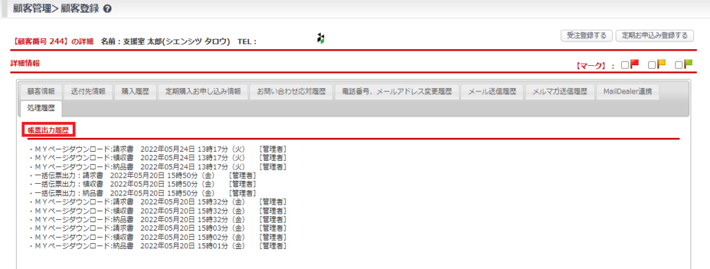 帳簿出力履歴から伝票(納品書・領収書・請求書)を表示する