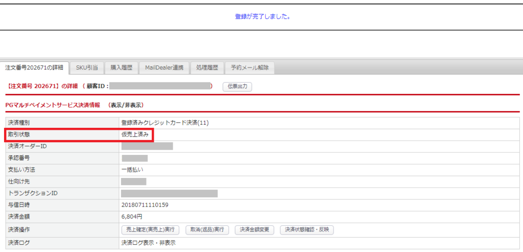 ※登録後、取引状態が「仮売上済み」となっていることご確認ください。