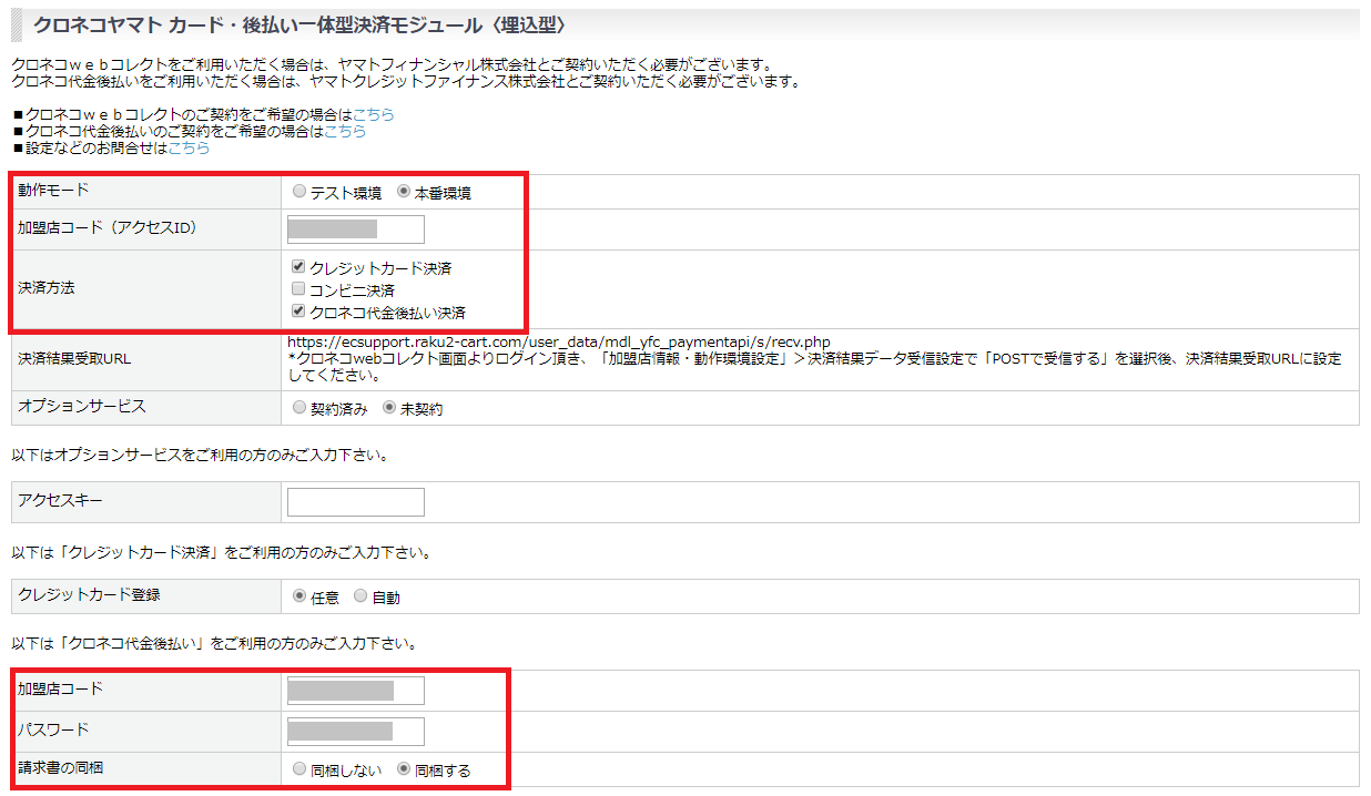 ショップ基本設定>店舗設定>決済モジュール設定タブ>ヤマトクレジット決済