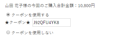 入力欄にクーポンコード1つを入力する仕様となっています。