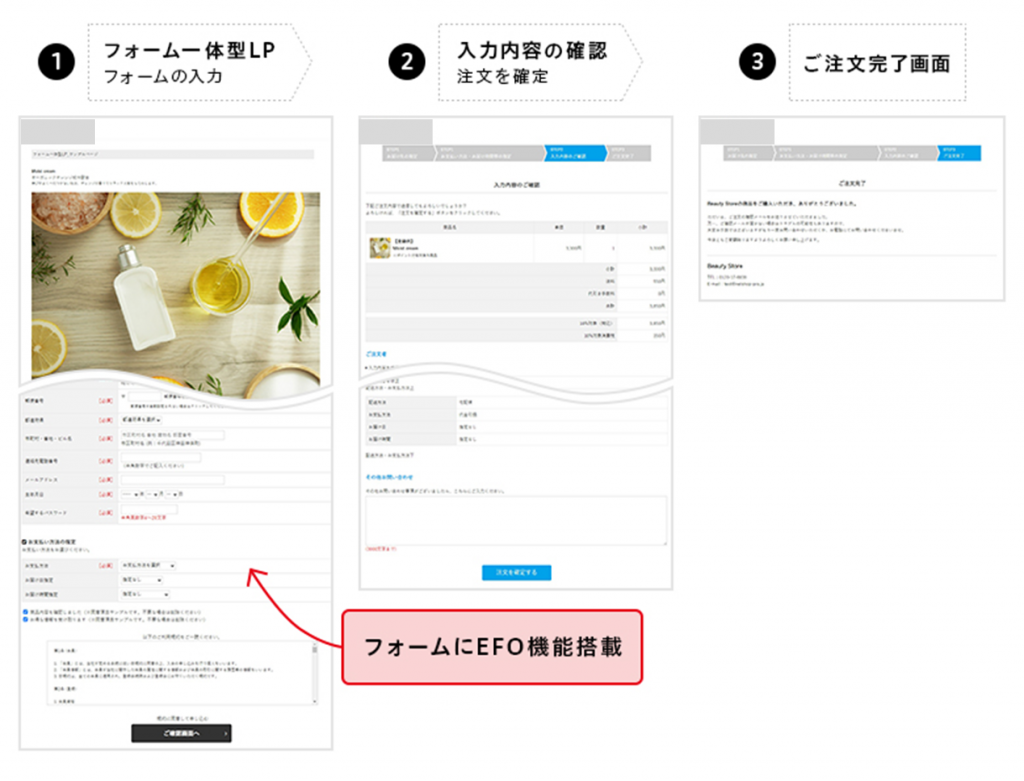 全ての項目を1ページにまとめることで遷移画面数が減り、注文完了までがスムーズに進みます。