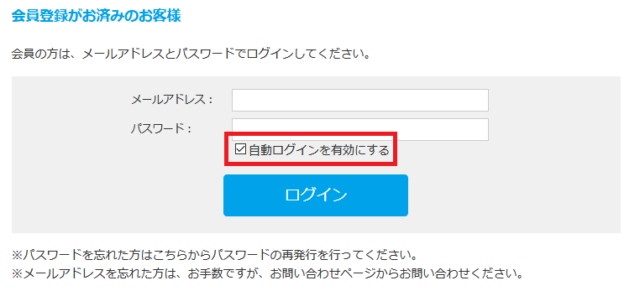 MYページログイン時に、「自動ログインを有効にする」にチェックを入れた状態でログインすると、