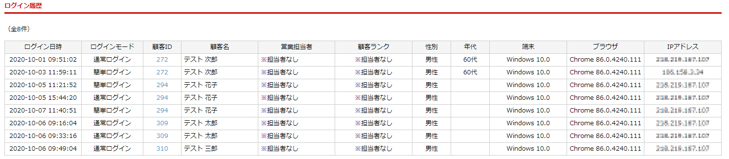 顧客別ログイン集計