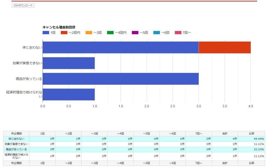 定期申込を一時休止、休止とした際の「休止理由」を集計できる機能です。
