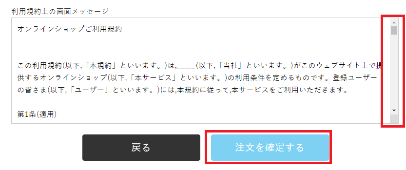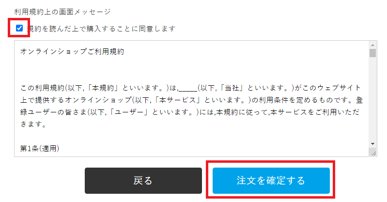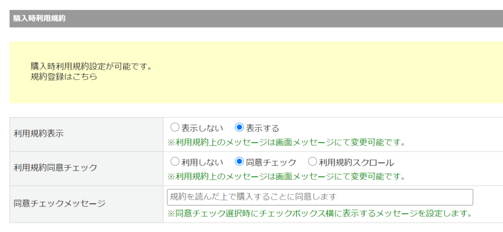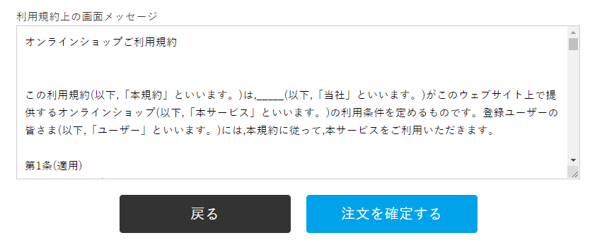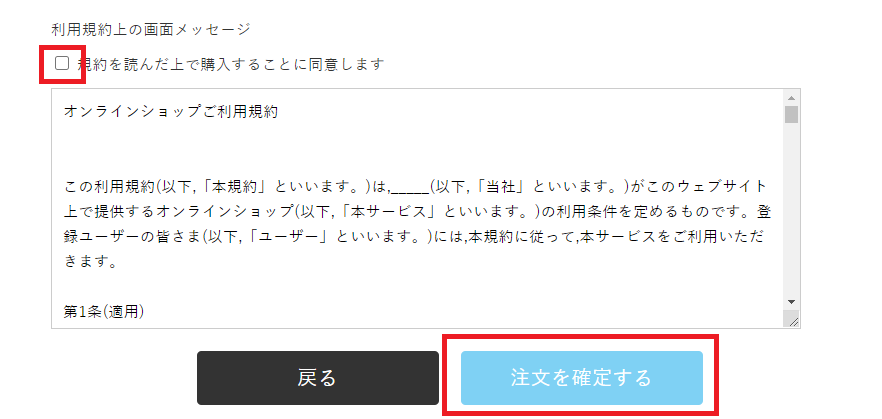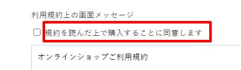 登録した利用規約を購入時の確認画面に表示させるための設定方法です。