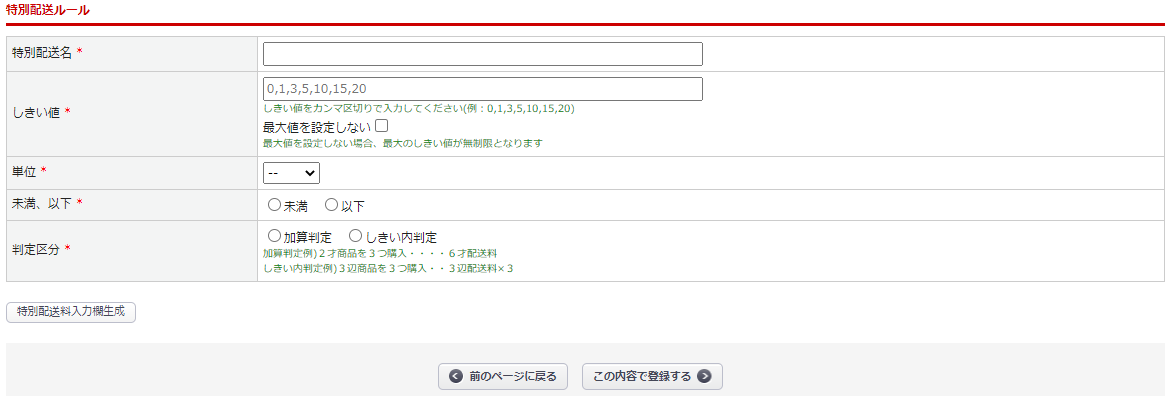 任意の「単位」および、「しきい値」を決めることで、送料の細かい調整が可能となります。