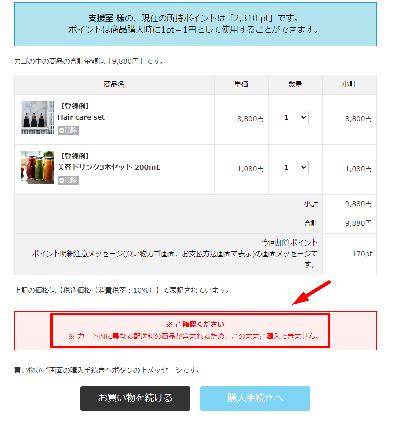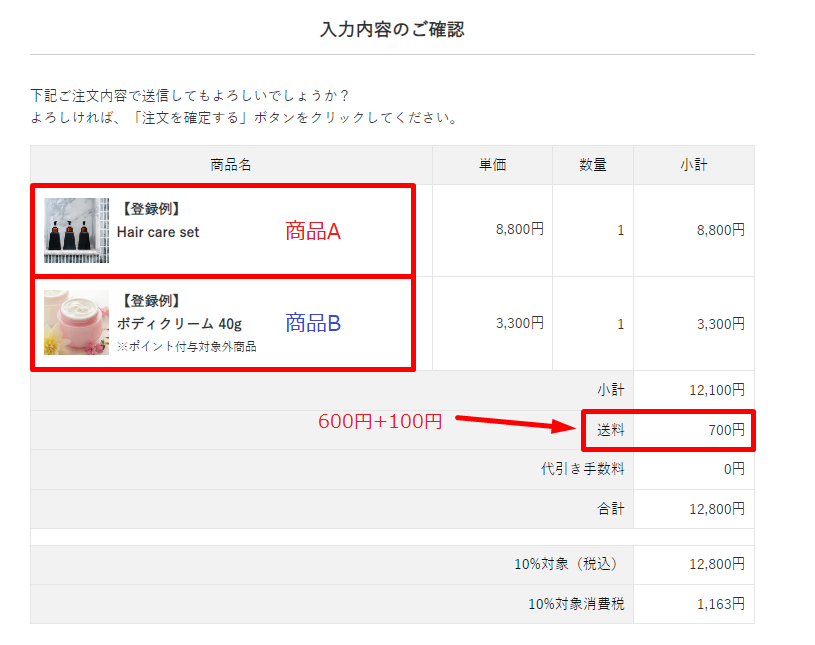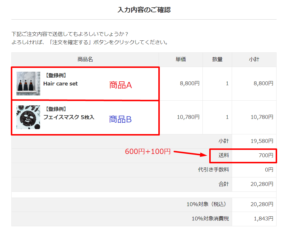 特別配送ルールが異なる商品を同時購入した場合、それぞれに設定されている特別配送料を合算した料金が送料となります。