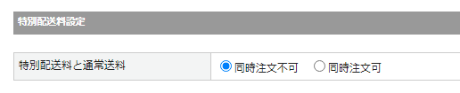 特別配送料の商品と通常送料の商品の同時購入の可否を設定します。