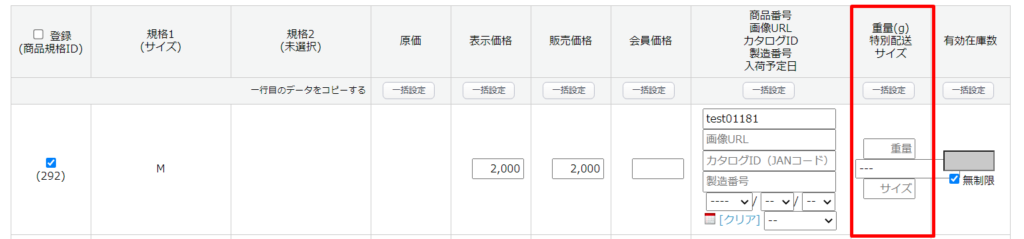 商品規格ごとに、特別配送料を登録してください。