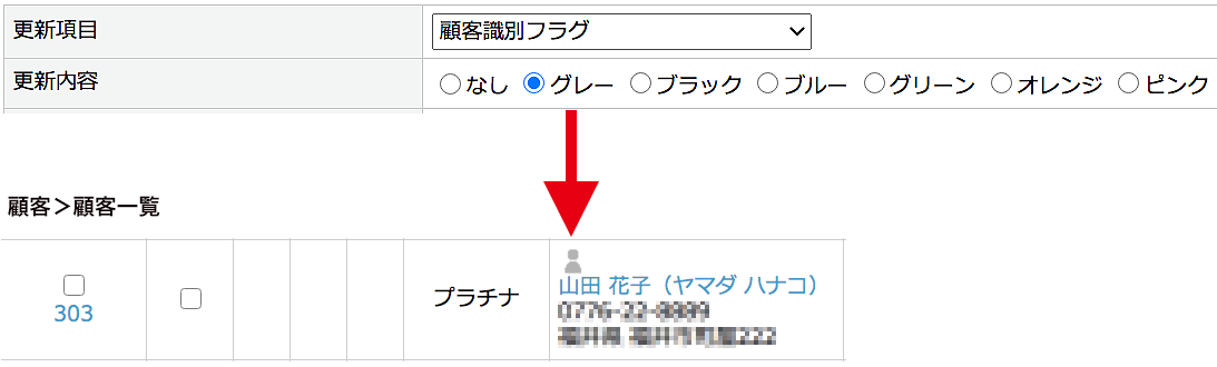 「受け取る」へ更新するか「受け取らない」へ更新するか、いずれかを選択してください。 ※「顧客識別フラグ」を選択した場合、更新内容項目に色を選択するラジオボタンが表示されます。