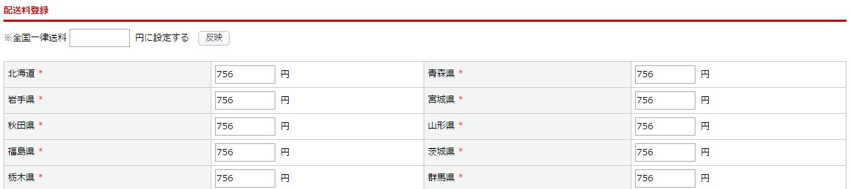 登録済の各配送方法についての送料設定方法は、