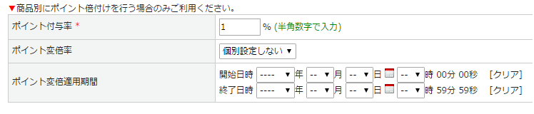 • 出品商品登録でポイント付与率が1%以上の場合に、定期継続時のポイント付与率が設定されます。