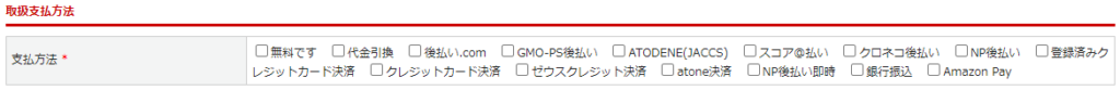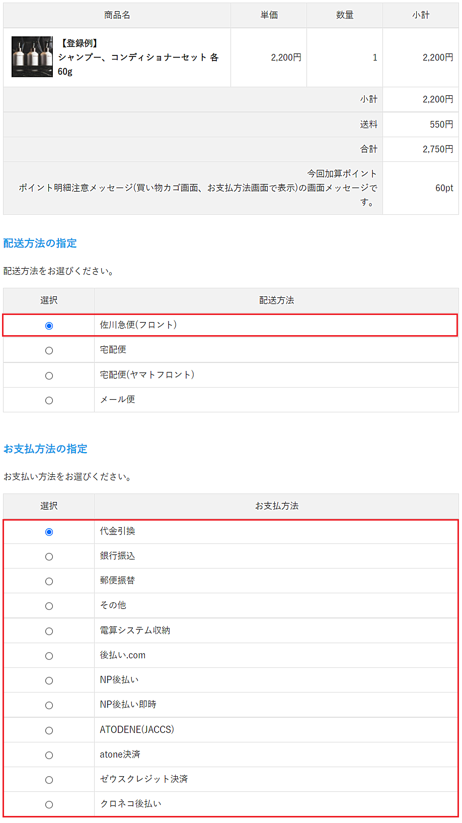 2.選択した配送方法で利用可能な支払方法が表示されます。