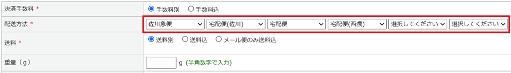 出品商品に配送方法を設定します。(※6個まで設定可能です)