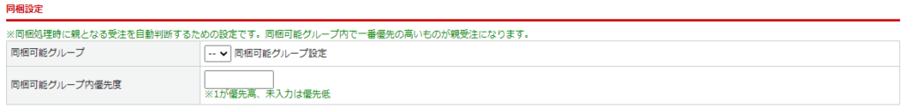 同梱可能グループ内優先度 同梱可能グループ内の優先度を設定できます。
