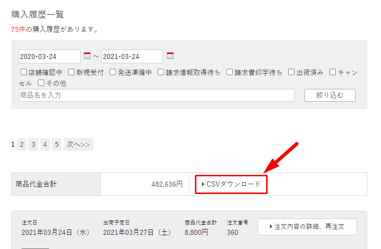 購入履歴CSV
