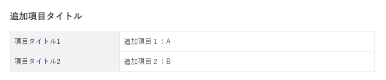 購入フロー追加項目の出力内容は以下の通りです。