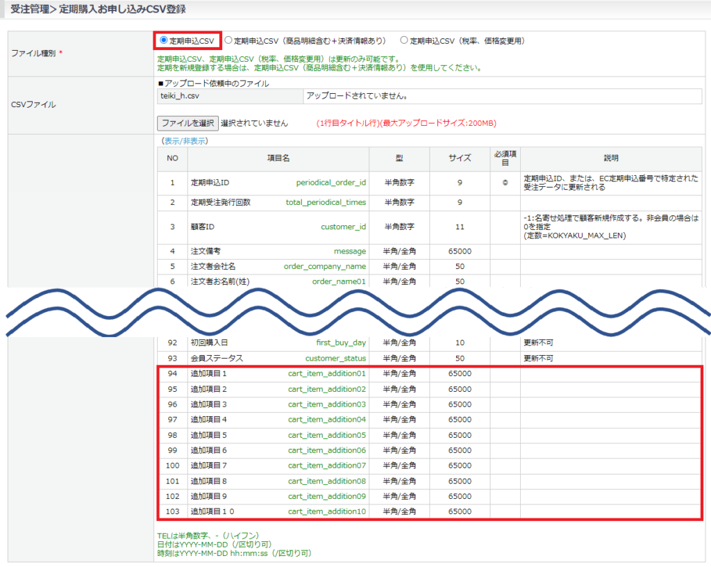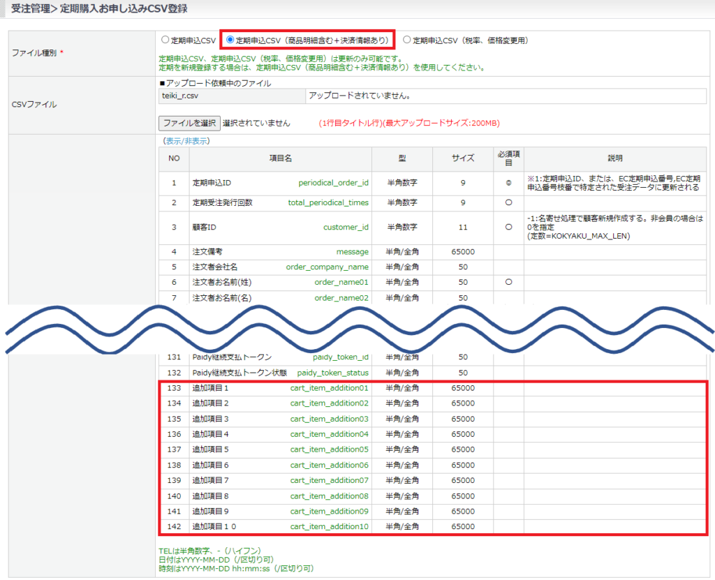 定期申込CSV・定期申込(商品明細含む)